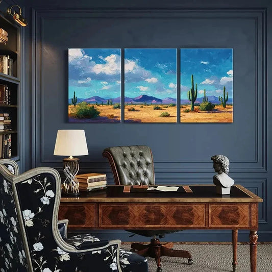 3pcs Pinnacles Desert Retro Illustration Metal Print Ready to Hang Art