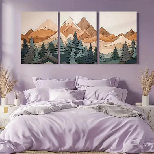3pcs Large Forest Mountain Nature Inspired Design Metal Print Ready to Hang Art