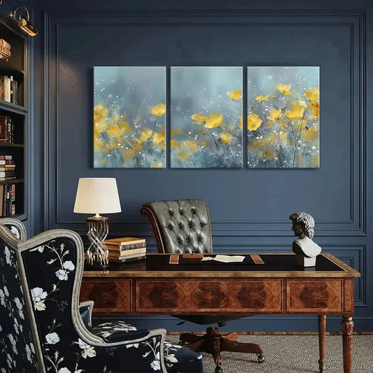 3pcs Artistic Yellow Flowers Delicate Petals Metal Print Ready to Hang Art