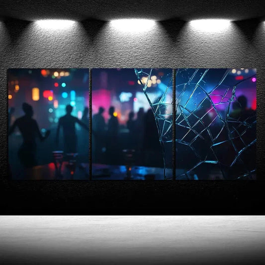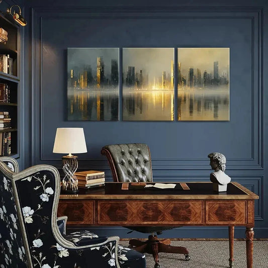 3pcs Cityscape Reflection Urban Skyline Futurist Metal Print Ready to Hang Art