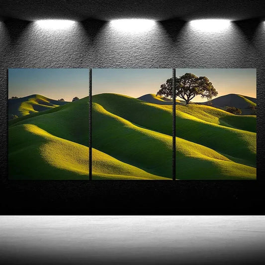 3pcs The Hill at Sunrise Green Themed Metal Print Ready to Hang Art