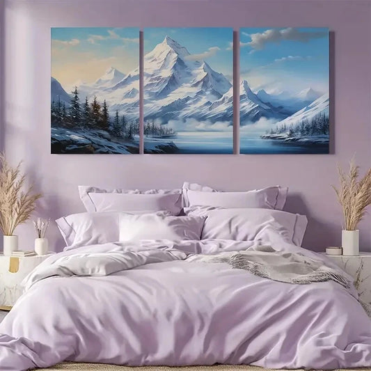 3pcs Winter Landscape Lake Mountains Illustration Metal Print Ready to Hang Art