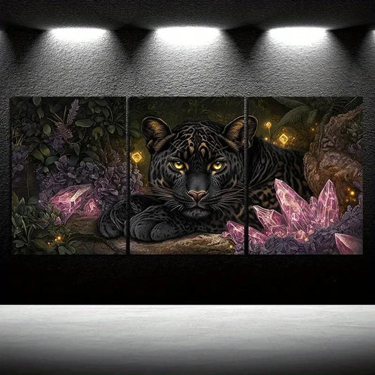 3pcs The Leopard in The Pink Jungle Metal Print Ready to Hang Art
