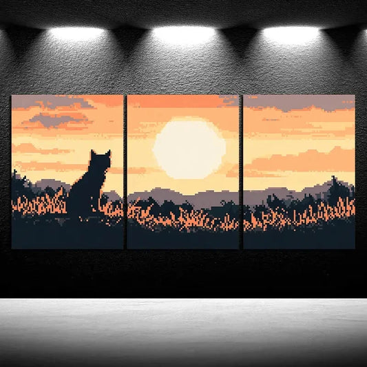 3pcs Cat and Sunset Sun Nature Scenery Metal Print Ready to Hang Art