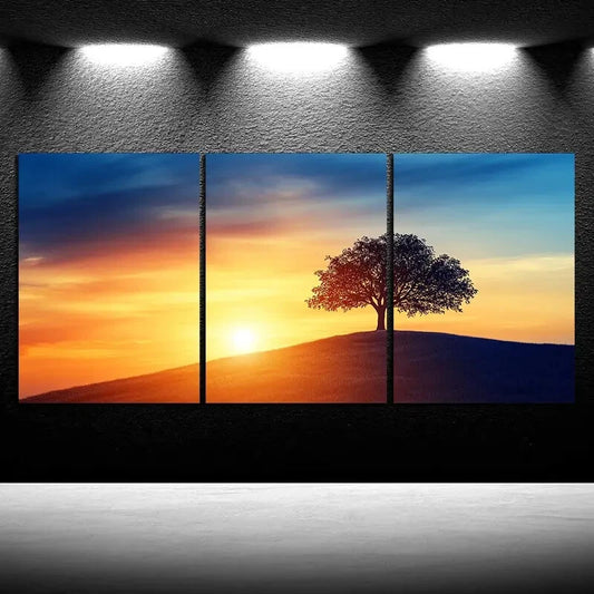 3pcs The Hill at Sunrise Series Metal Print Ready to Hang Art