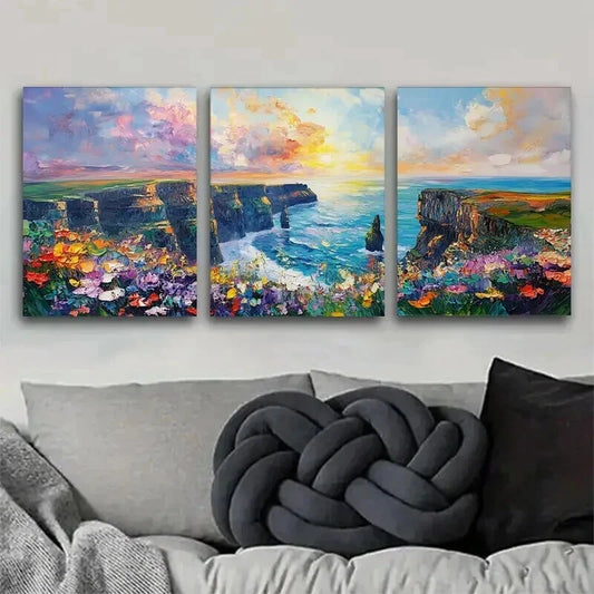 3pcs Cliffs by Sea with Colorful Flower Perfect Wall Art Set Canvas Framed 40x60cm - High Quality Print 100% Australian Made Wall Canvas Ready to Hang