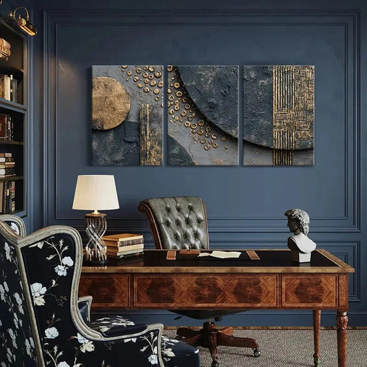 3pcs Abstract Golden Black Texture Art Poster Metal Print Ready to Hang Art