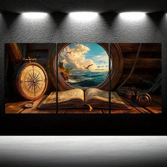 3pcs Old View Outdated Control Room Metal Print Ready to Hang Art
