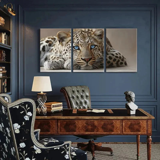 3pcs Leopard Art Wildlife Decor Blue Eyes Metal Print Ready to Hang Art