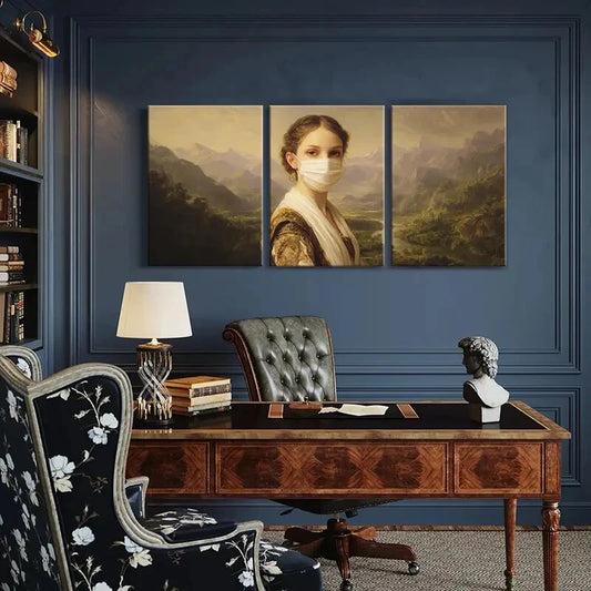 3pcs Artistic Woman Portrait Mountain Landscape Metal Print Ready to Hang Art