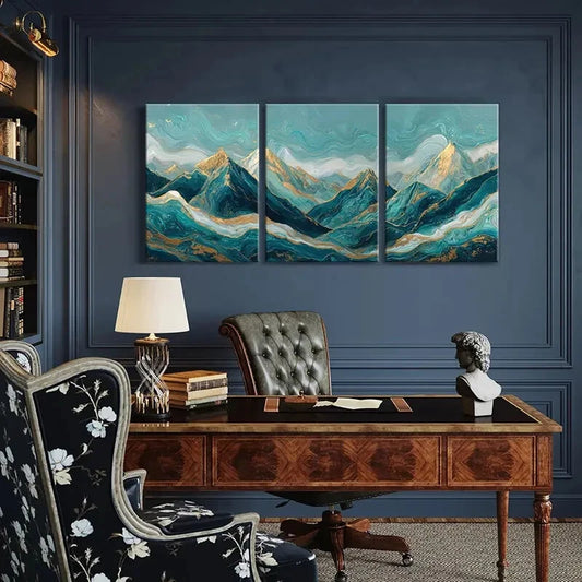 3pcs Abstract Mountain Landscape Golden Peaks Metal Print Ready to Hang Art