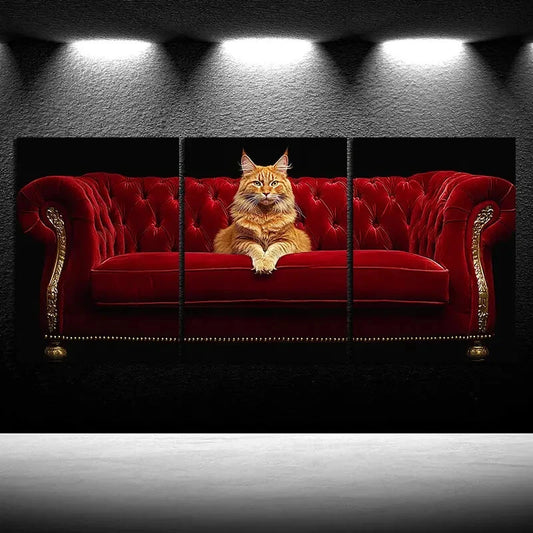 3pcs The Cute Cat on the Red Sofa Metal Print Ready to Hang Art