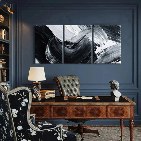 3pcs Abstract Art Dynamic Monochrome Palette Metal Print Ready to Hang Art