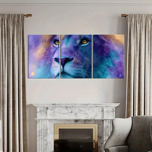 3pcs Artistic Lion Portrait Vibrant Colors Metal Print Ready to Hang Art