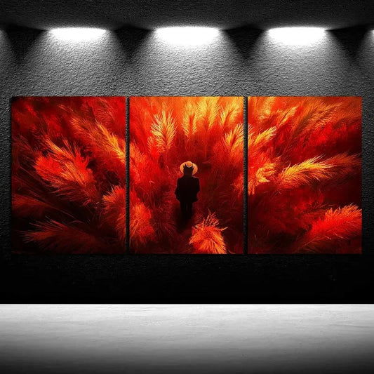 3pcs Abstract Feather Art Vibrant Colors Painting Metal Print Ready to Hang Art