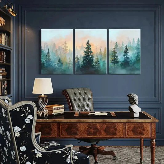 3pcs Forest Silhouette Misty Nature Landscape Metal Print Ready to Hang Art