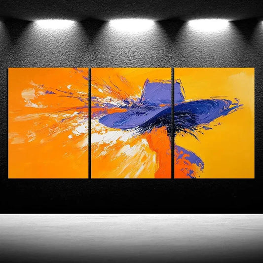 3pcs A Woman Wearing a Straw Hat Metal Print Ready to Hang Art