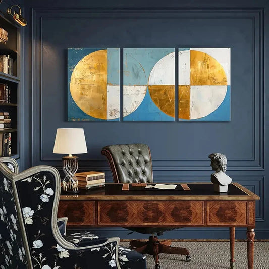 3pcs Blue & Golden Geometric Shapes Perfect Wall Art Set Canvas Framed 40x60cm - High Quality Print 100% Australian Made Wall Canvas Ready to Hang
