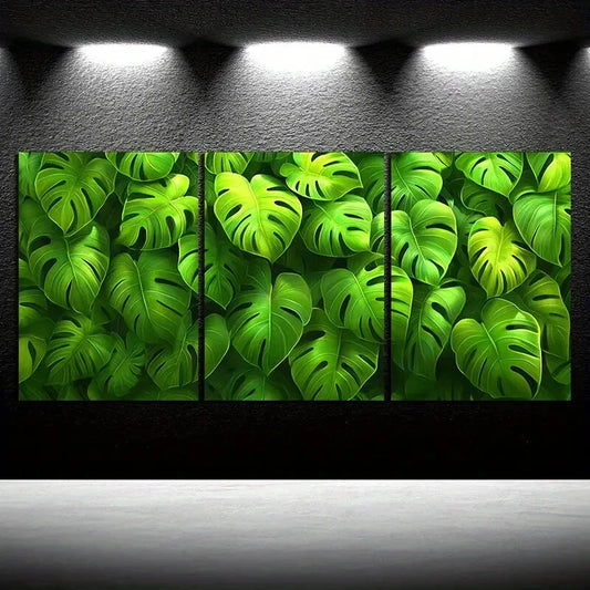 3pcs Light Green Plants Under The Sunshine Metal Print Ready to Hang Art