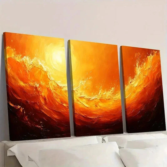 3pcs Abstract Swirl Orange Yellow Beige Design Wall Art Set Canvas Framed 40x60cm - High Quality Print 100% Australian Made Wall Canvas Ready to Hang