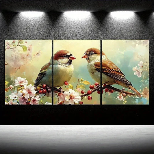 3pcs Birds on Plum Blossom Branches Paintings Metal Print Ready to Hang Art