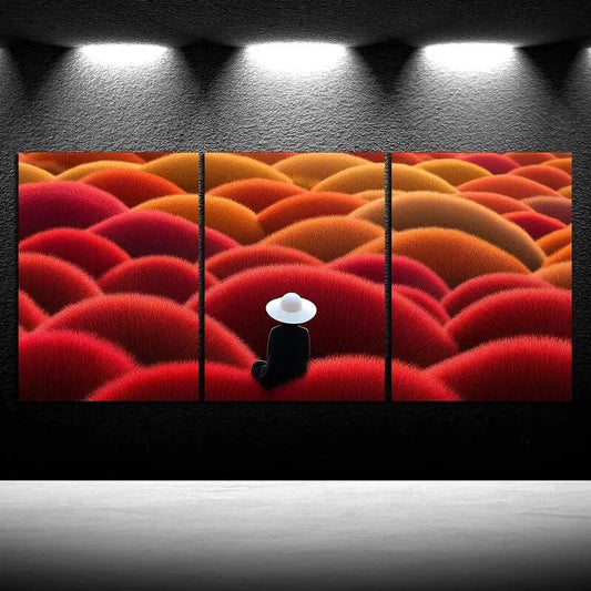 3pcs Person Wearing a Straw Hat Sitting On Field Metal Print Ready to Hang Art