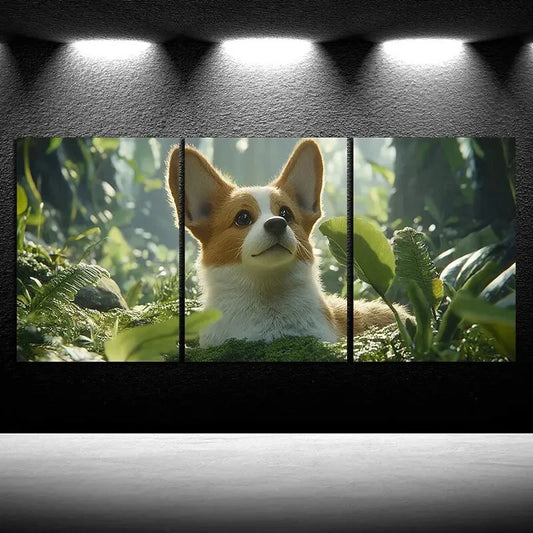 3pcs Green Leaves Dog in The Forest Metal Print Ready to Hang Art