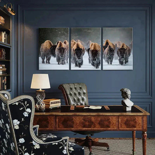 3pcs Winter Bison Herd Snow Landscape Photography Metal Print Ready to Hang Art