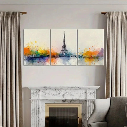3pcs Eiffel Tower Watercolor Art Paris Cityscape Metal Print Ready to Hang Art
