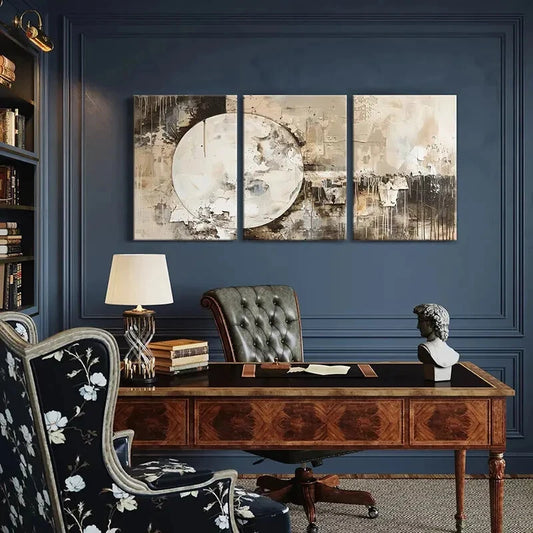 3pcs Abstract Art Modern Design Neutral Colors Metal Print Ready to Hang Art