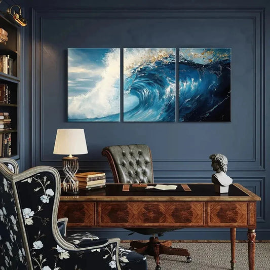 3pcs Abstract Ocean Wave Art Blue Sea Spray Metal Print Ready to Hang Art