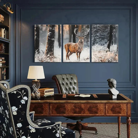 3pcs Winter Forest Deer Art Snowy Landscape Metal Print Ready to Hang Art
