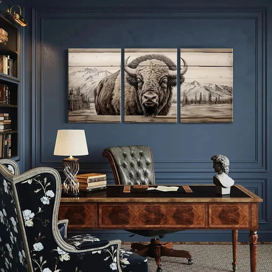 3pcs Buffalo Mountain Landscape Nature Scene Metal Print Ready to Hang Art