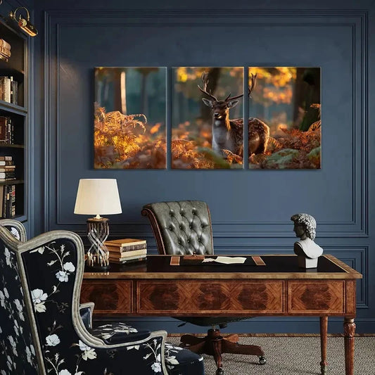 3pcs Autumn Forest Deer Art Wildlife Print Metal Print Ready to Hang Art