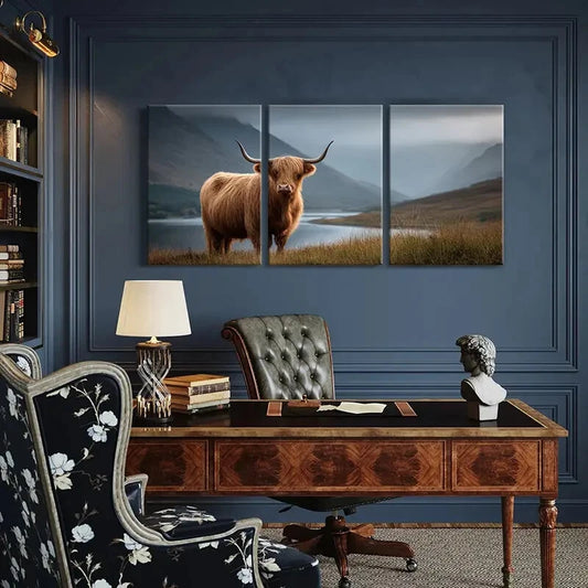 3pcs Highland Cow Mountain Landscape Art Scenery Metal Print Ready to Hang Art