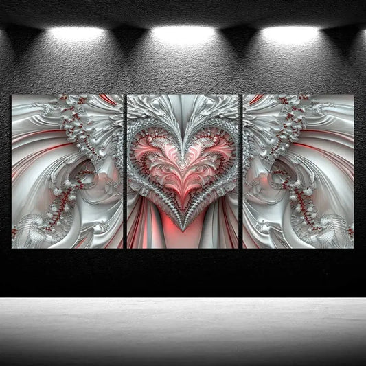 3pcs Love Theme Pink and Silver Metal Print Ready to Hang Art
