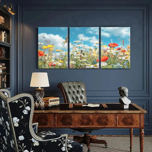 3pcs Spring Meadow Wildflowers Floral Art Metal Print Ready to Hang Art