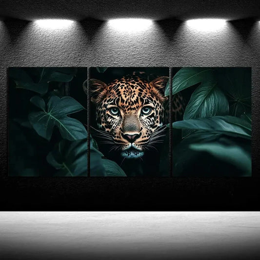 3pcs Leopard in Lush Green Leaves Metal Print Ready to Hang Art