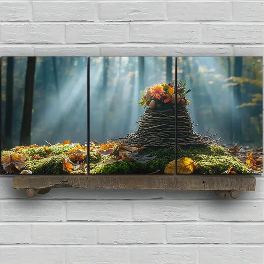 3pcs Autumn Forest Scene with Floral Hat Metal Print Ready to Hang Art