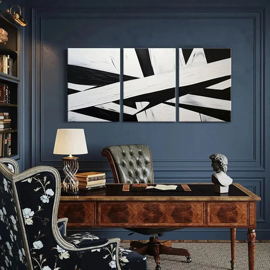 3pcs Abstract Geometric Art Black White Lines Metal Print Ready to Hang Art