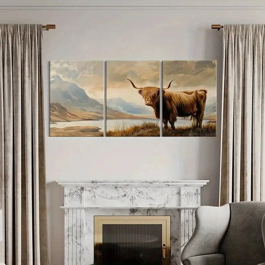 3pcs Highland Cow Landscape Art Nature Scene Metal Print Ready to Hang Art