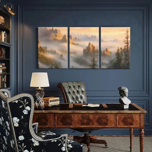 3pcs Mountain Landscape Misty Peaks Forest Scene Metal Print Ready to Hang Art