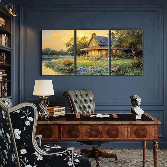 3pcs Rustic Cottage Warm Lighting Floral Garden Metal Print Ready to Hang Art