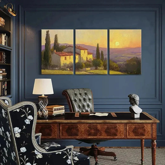 3pcs Tuscan Villa Sunset Landscape Warm Colors Metal Print Ready to Hang Art