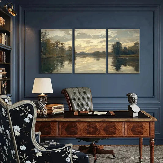 3pcs Landscape Painting Serene River Scenery Metal Print Ready to Hang Art