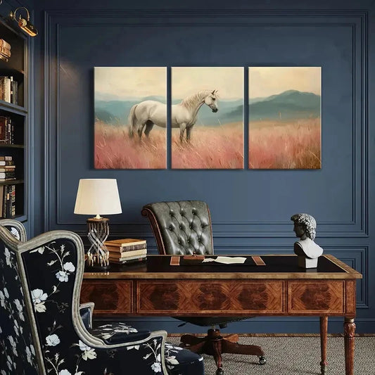 3pcs White Horse In Field Landscape Art Metal Print Ready to Hang Art