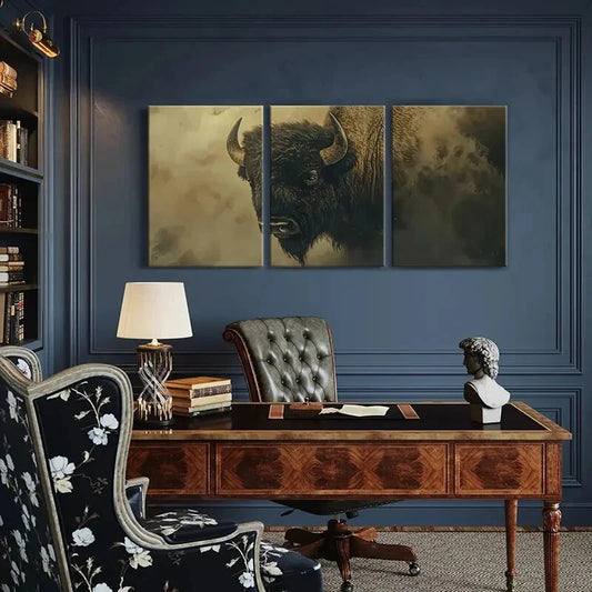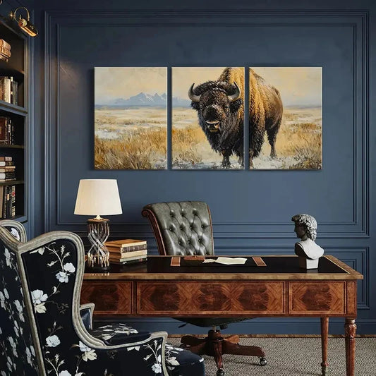 3pcs Artistic Bison Portrait Wildlife Nature Scene Metal Print Ready to Hang Art