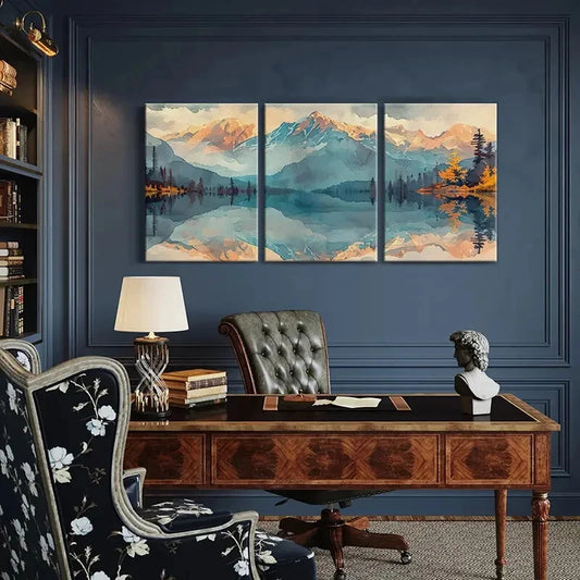 3pcs Watercolor Style Mountains Reflection Lake Metal Print Ready to Hang Art