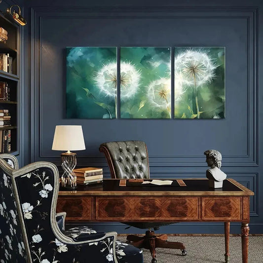 3pcs Artistic Dandelion Illustration Abstract Metal Print Ready to Hang Art