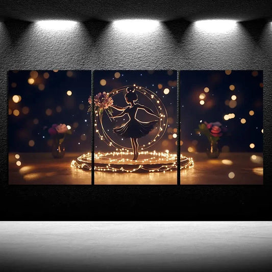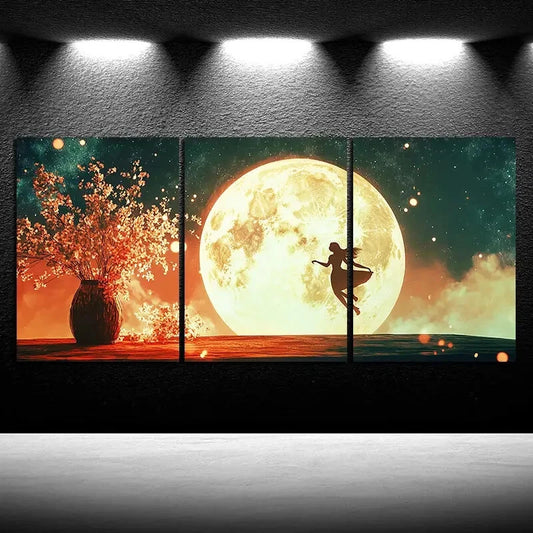 3pcs Girl Dancing Under The Starry Sky Metal Print Ready to Hang Art